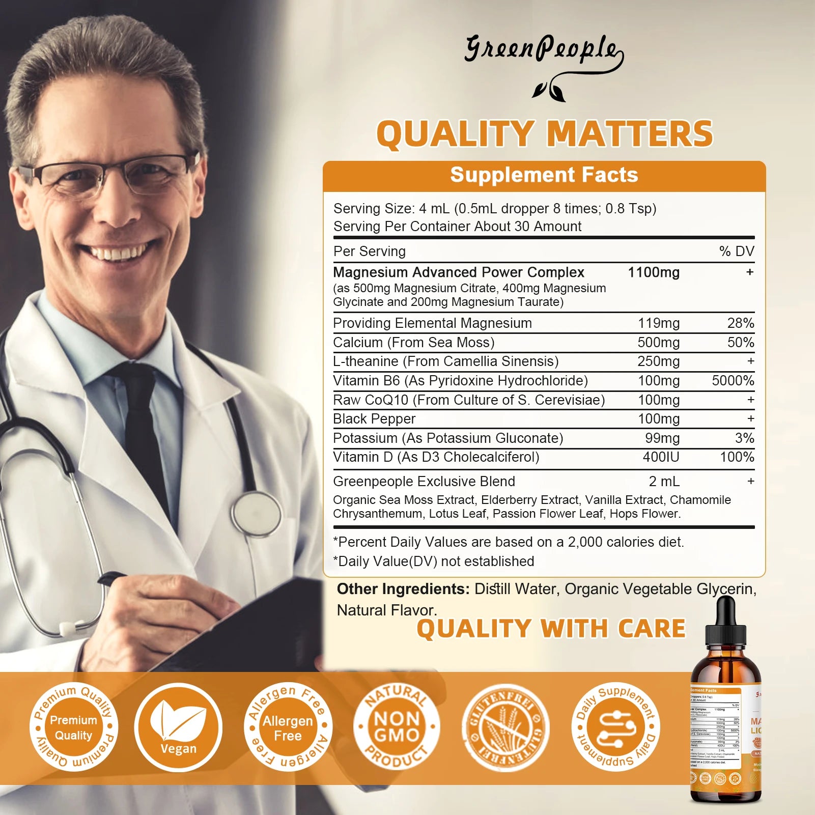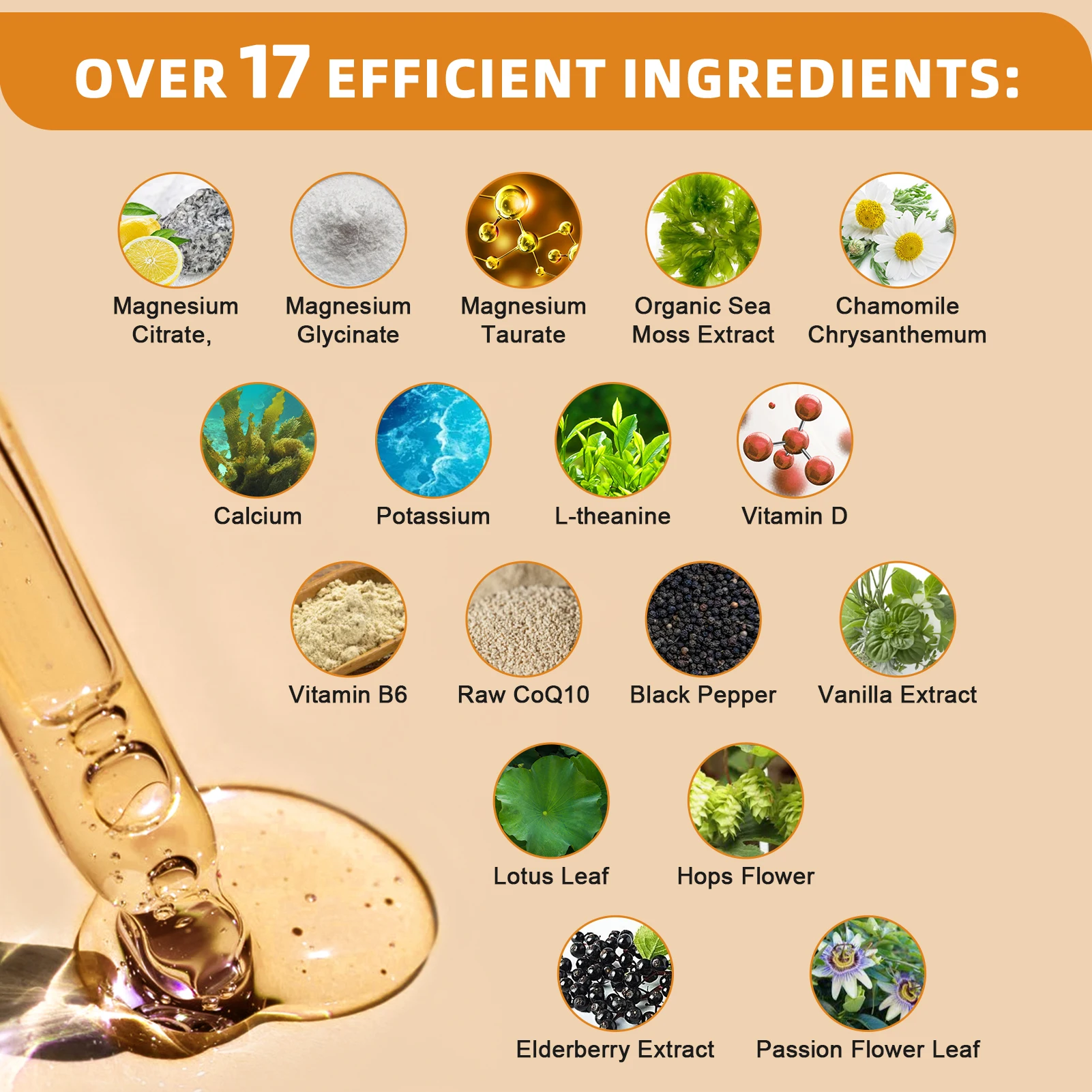 Magnesium Glycinate Liquid Drop Triple Magnesium Supplement with Magnesium Glycinate & Citrate for Calm Mood,Muscle & Sleep